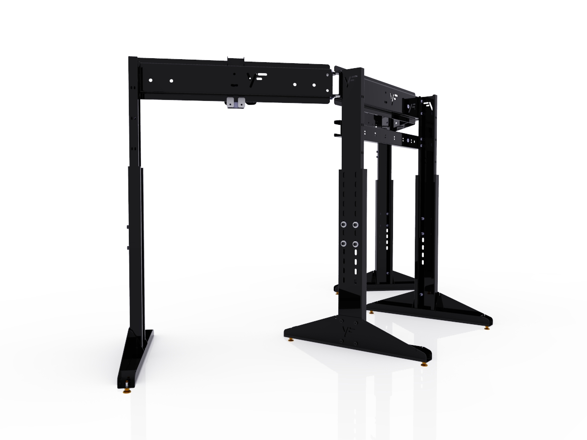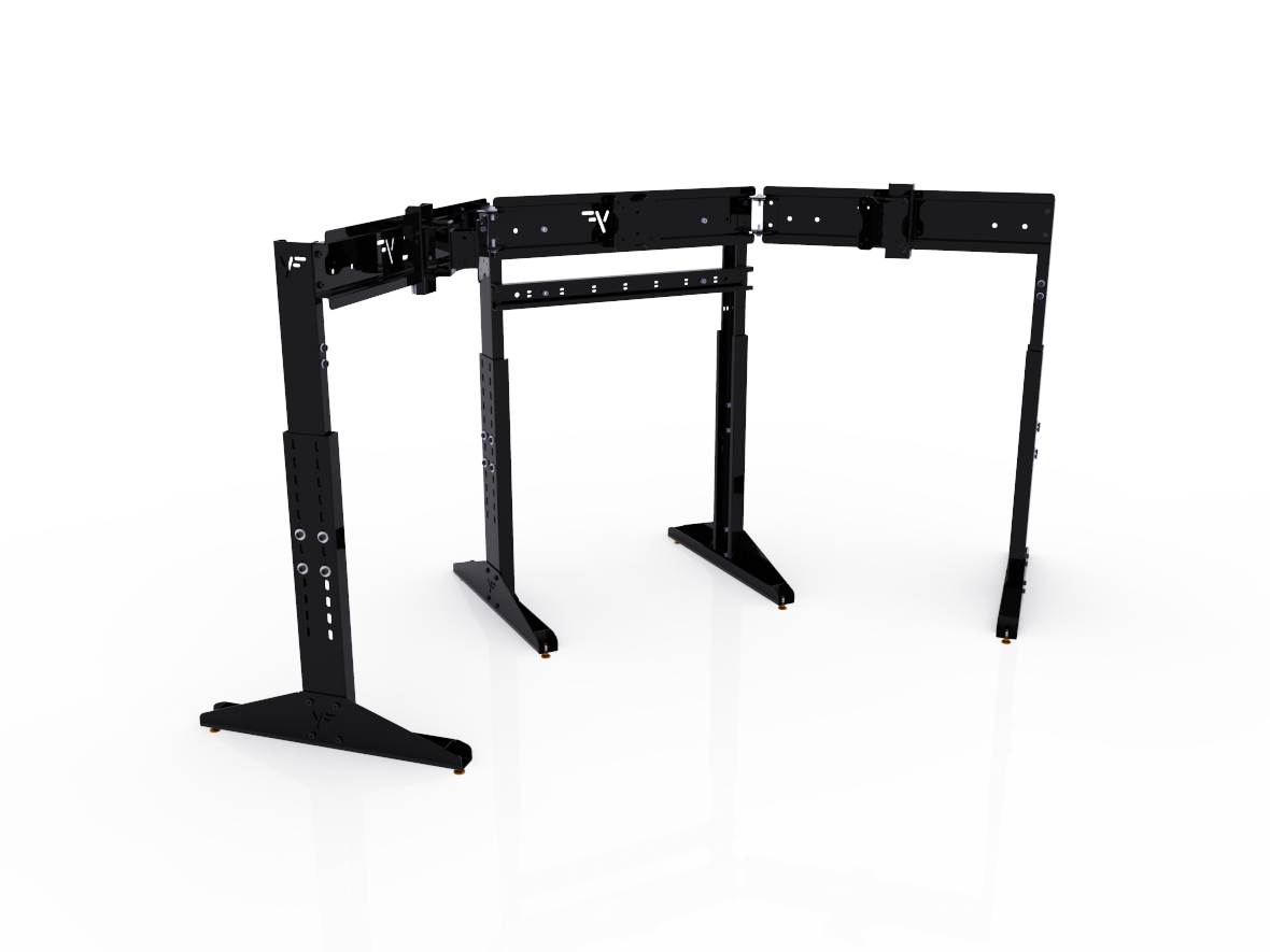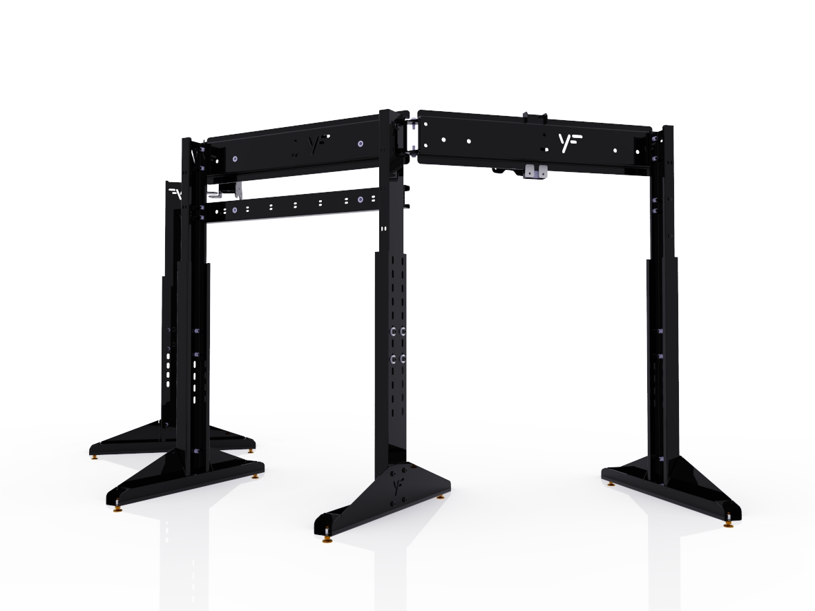 Soporte externo para 3 pantallas construido en chapa de acero al carbono, fabricado por corte láser y con recubrimiento de pintura epoxi al horno.